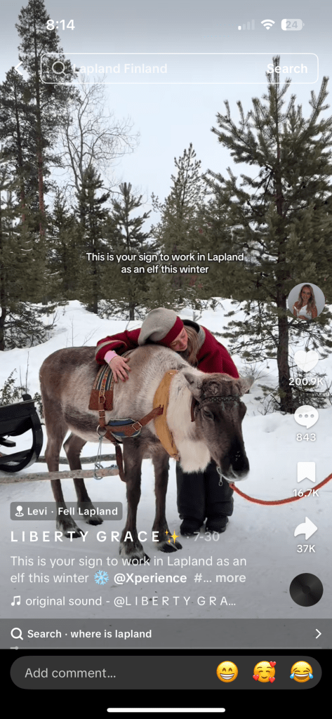 The elves, or at least the ones taking over TikTok, work for Lapland Safaris. The description for the elves on the Lapland safari website says